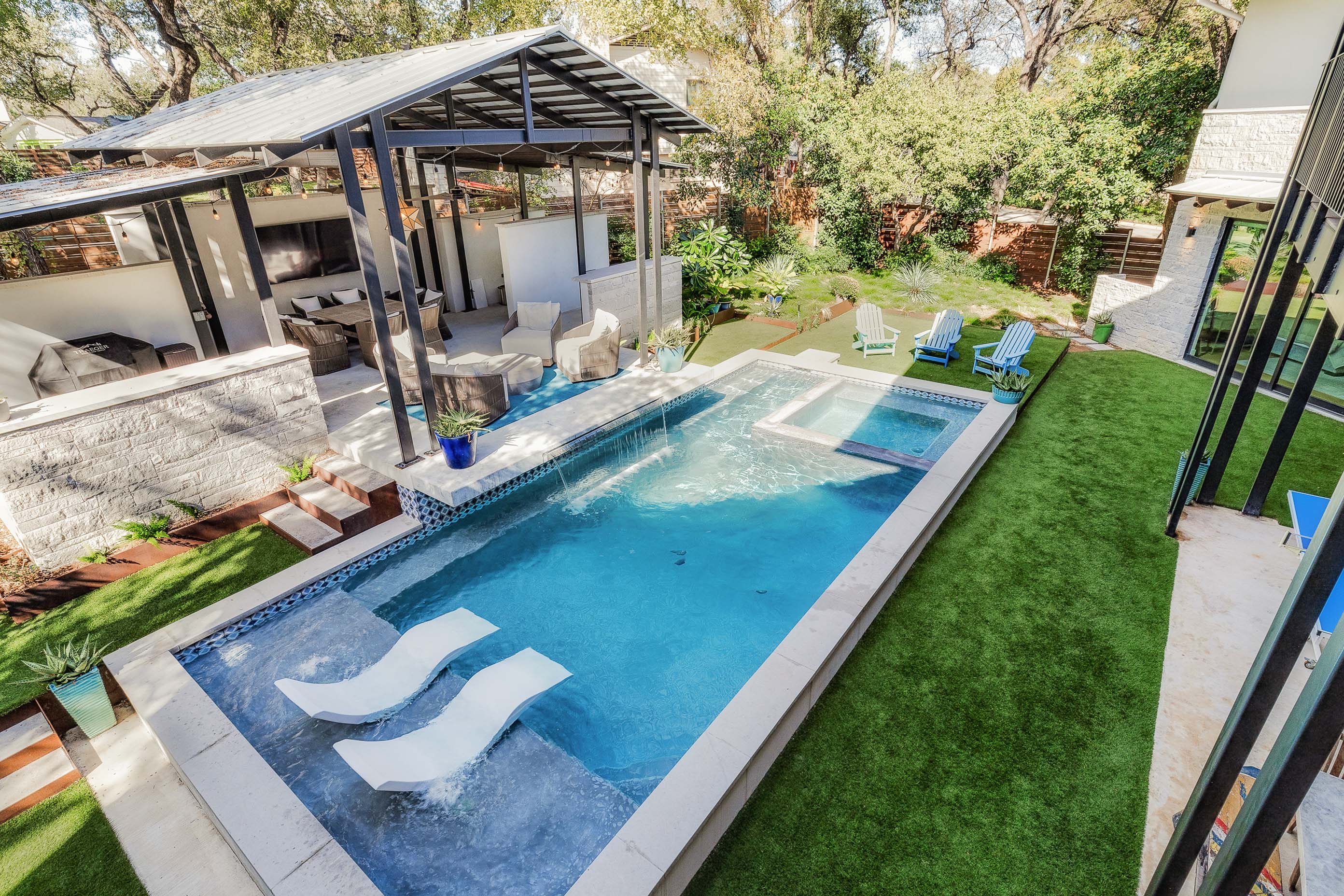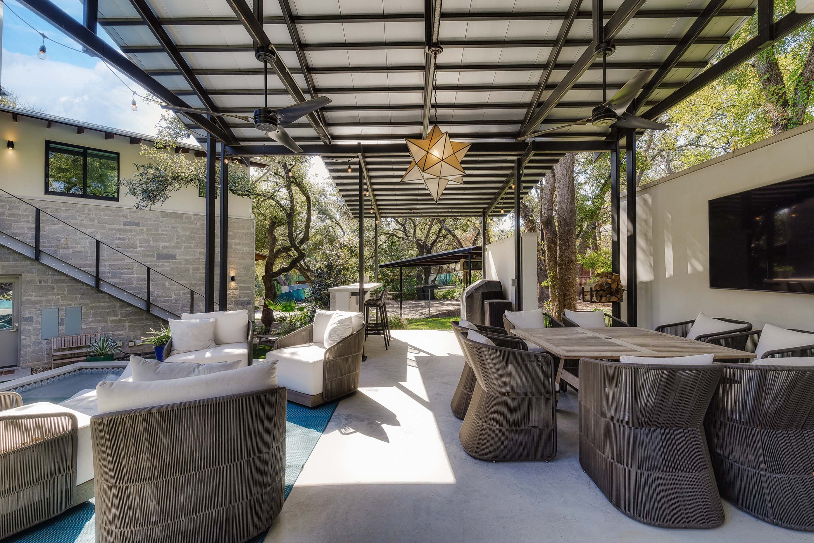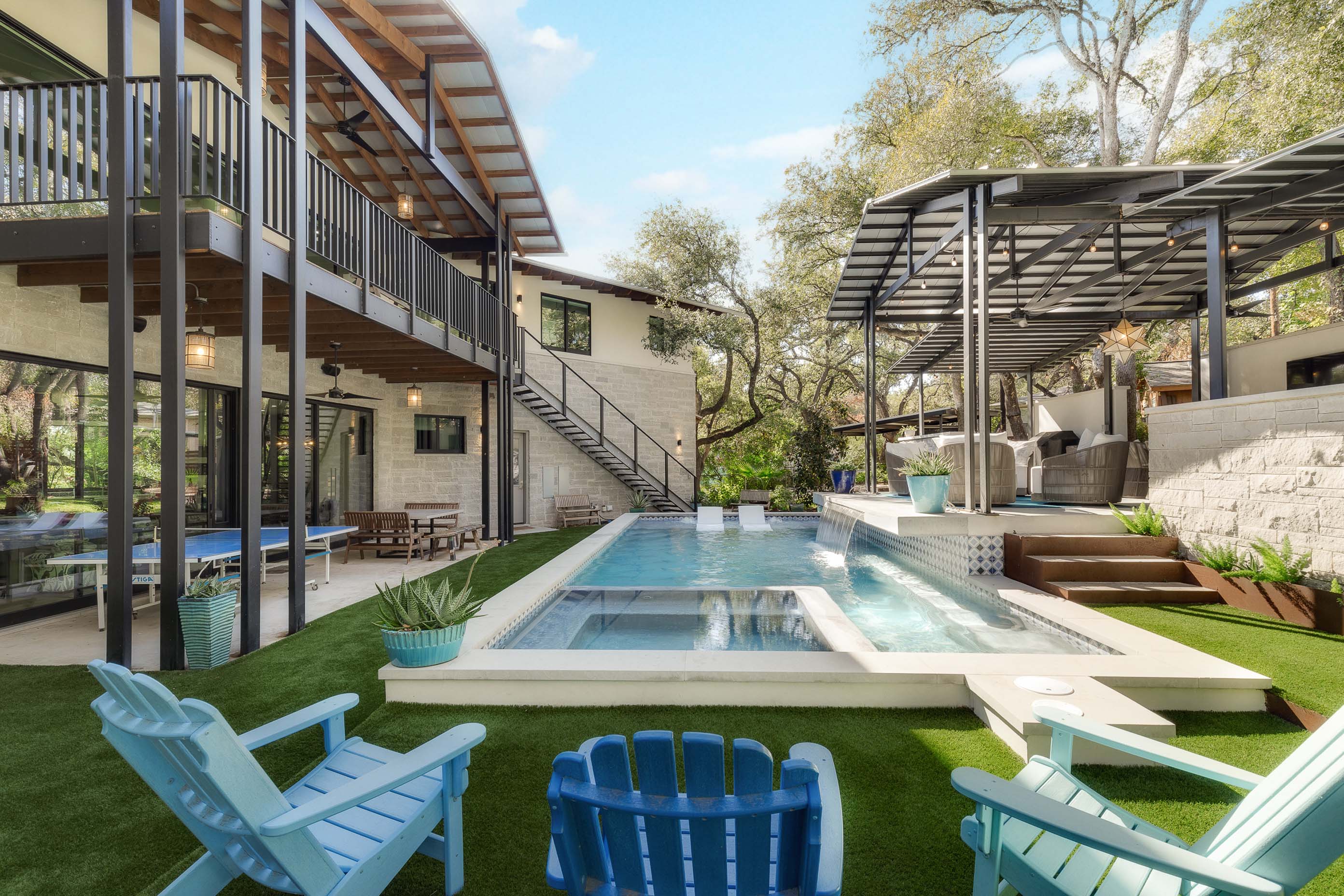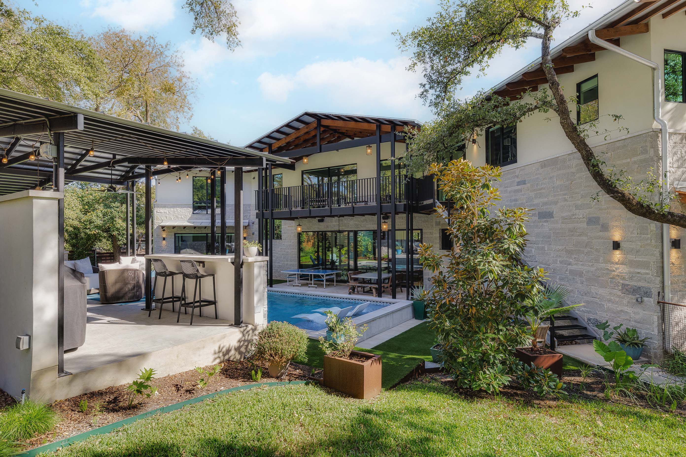 This custom home embodies the quality, craftsmanship, and attention to detail expected in a true luxury residence. Situated on a flat, tree-canopied 1/2-acre lot in highly desirable Westwood Terrace, this property offers an unbeatable combination of privacy and walkability in Westlake's most sought-after neighborhood. The thoughtfully designed layout features a luxurious owner's suite with separate his-and-hers primary baths, three expansive living areas, and versatile guest quarters with both interior and exterior access. Seamless indoor-outdoor living is at the heart of this home, opening to a resort-style pool and cabana. This backyard oasis is perfect for both entertaining and relaxation. Ideally positioned at the end of a quiet horseshoe street, this idyllic setting provides a peaceful retreat while being just a five-minute walk from the best of Westlake, including top-tier lifestyle amenities and Eanes ISD, the #1-ranked school district in Texas. For added convenience, the home is also available fully or partially furnished, offering a turnkey luxury living experience. Low tax rate- 1.47%