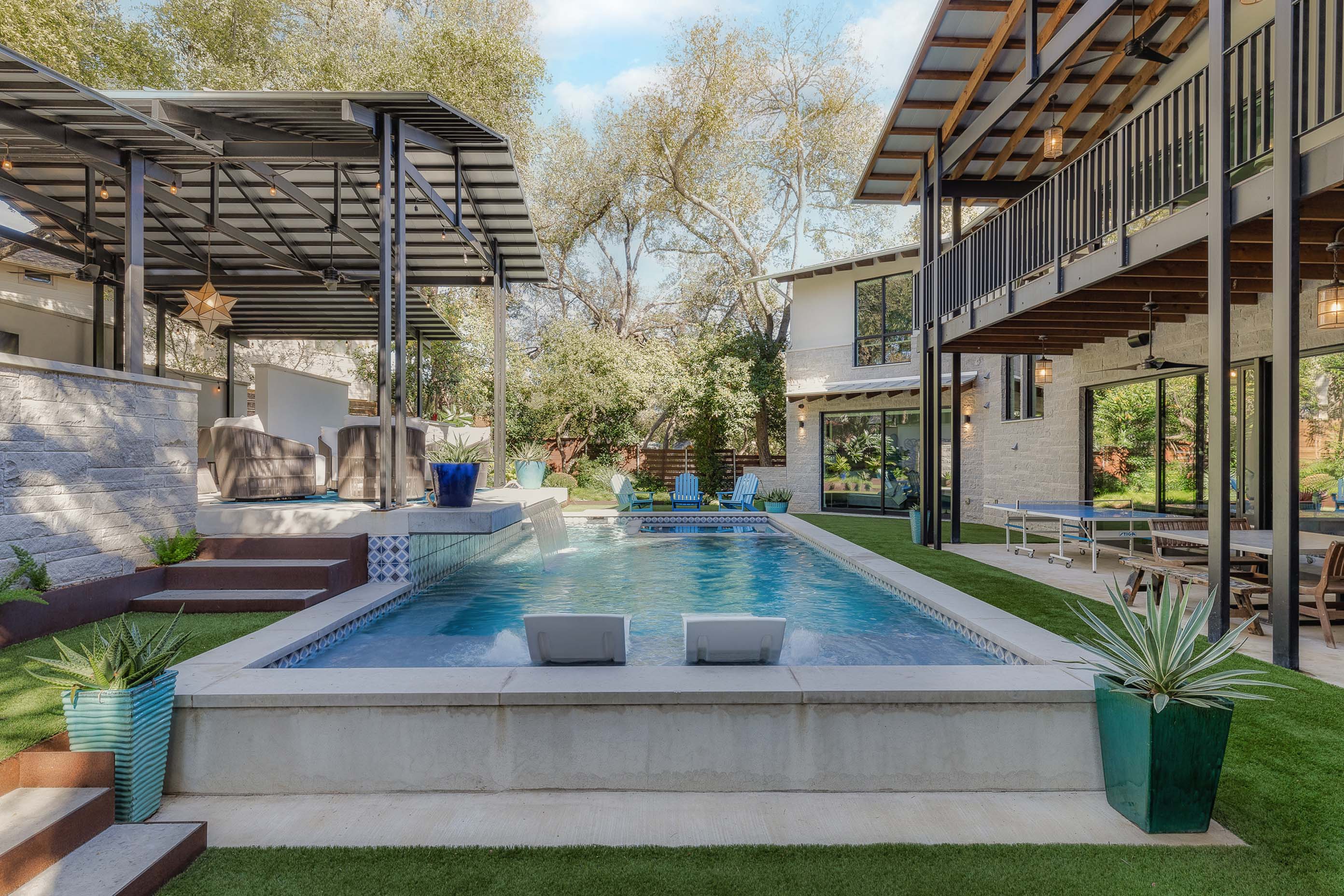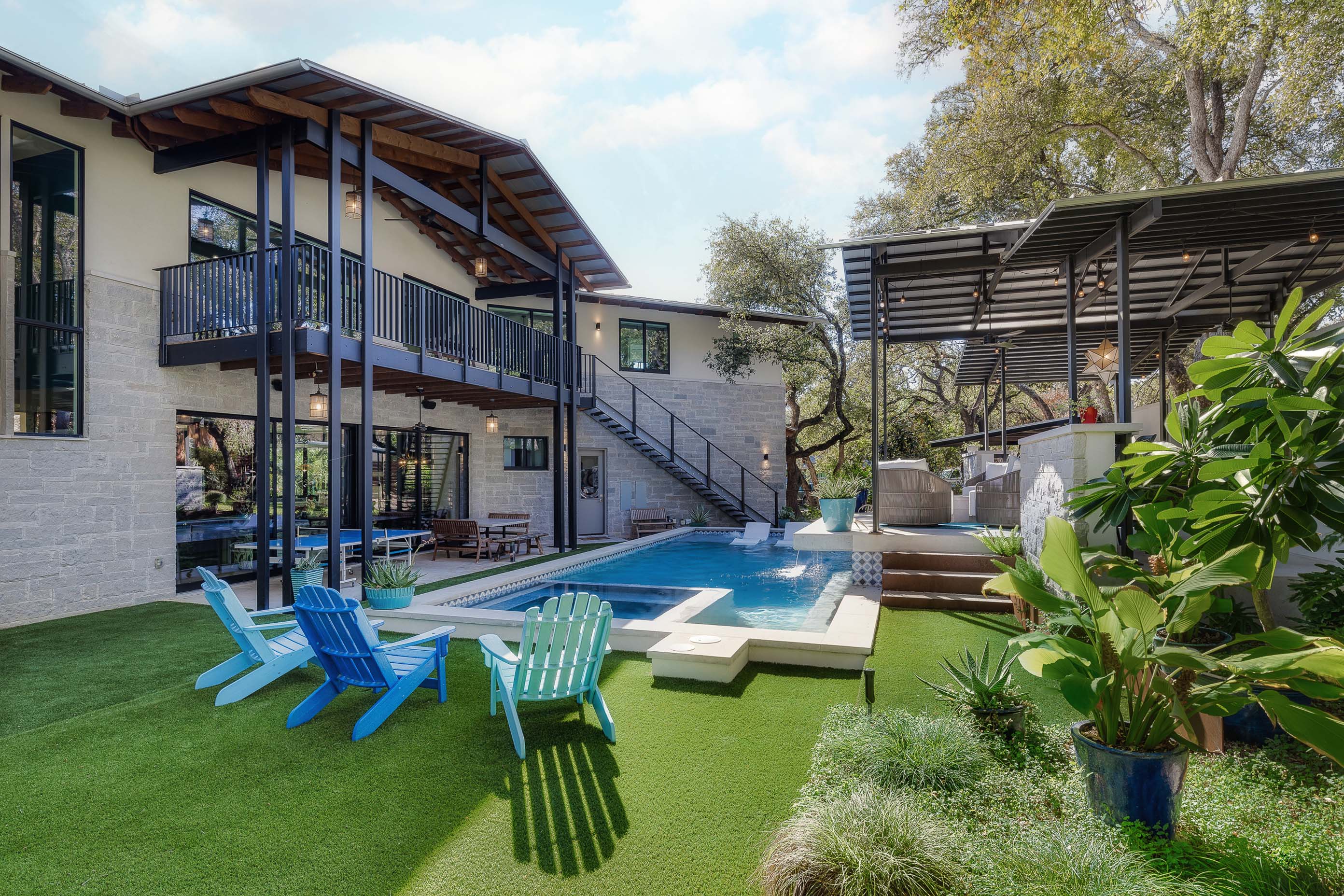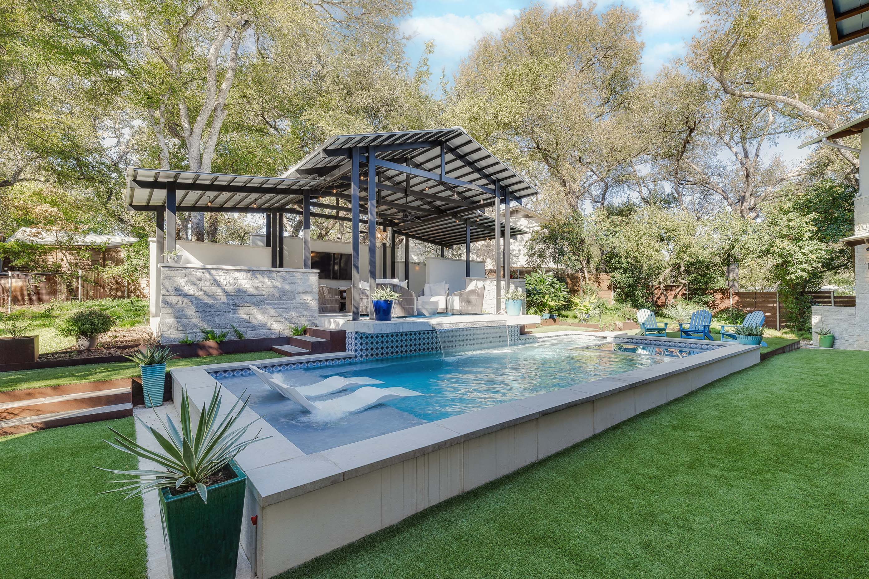 This custom home embodies the quality, craftsmanship, and attention to detail expected in a true luxury residence. Situated on a flat, tree-canopied 1/2-acre lot in highly desirable Westwood Terrace, this property offers an unbeatable combination of privacy and walkability in Westlake's most sought-after neighborhood. The thoughtfully designed layout features a luxurious owner's suite with separate his-and-hers primary baths, three expansive living areas, and versatile guest quarters with both interior and exterior access. Seamless indoor-outdoor living is at the heart of this home, opening to a resort-style pool and cabana. This backyard oasis is perfect for both entertaining and relaxation. Ideally positioned at the end of a quiet horseshoe street, this idyllic setting provides a peaceful retreat while being just a five-minute walk from the best of Westlake, including top-tier lifestyle amenities and Eanes ISD, the #1-ranked school district in Texas. For added convenience, the home is also available fully or partially furnished, offering a turnkey luxury living experience. Low tax rate- 1.47%