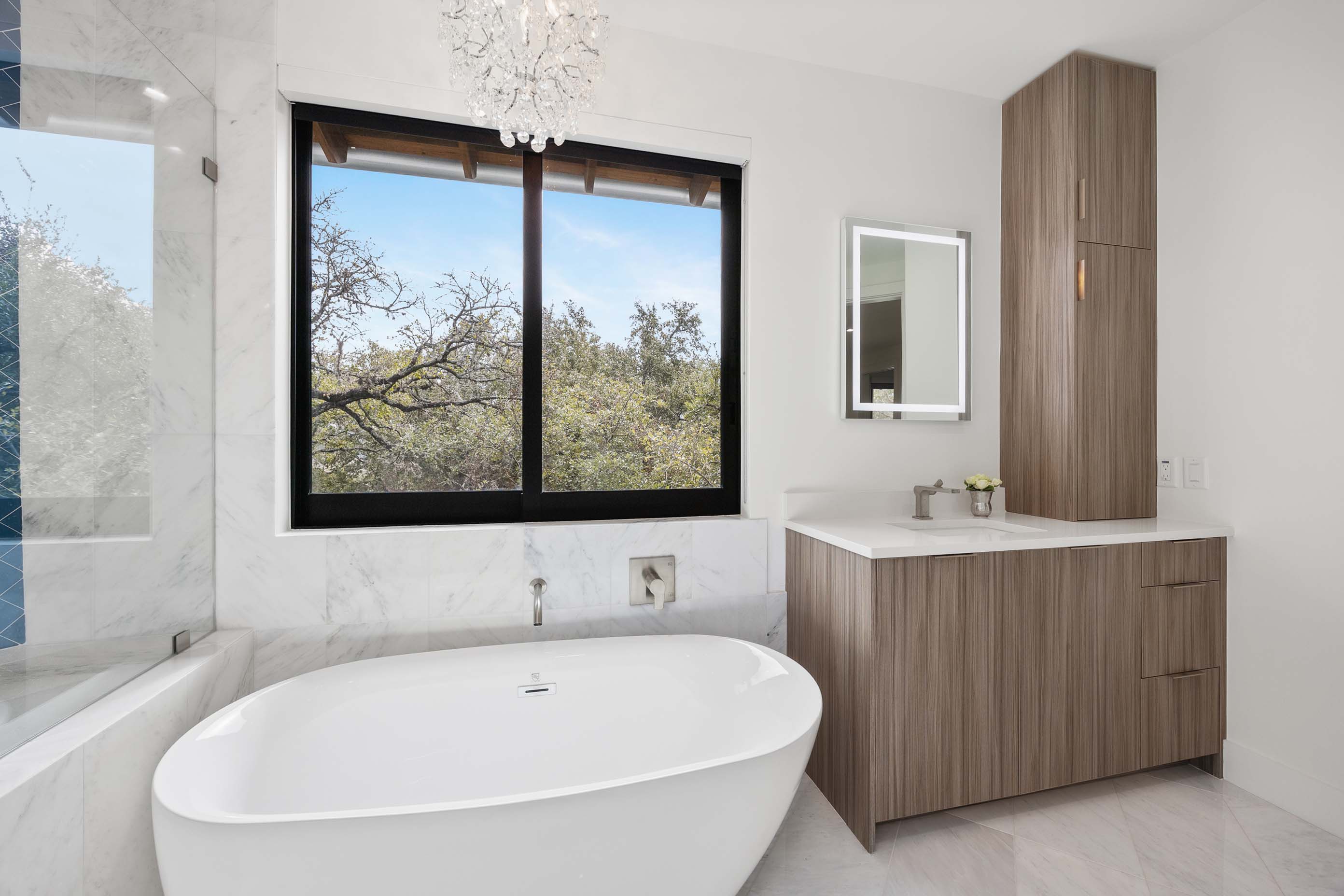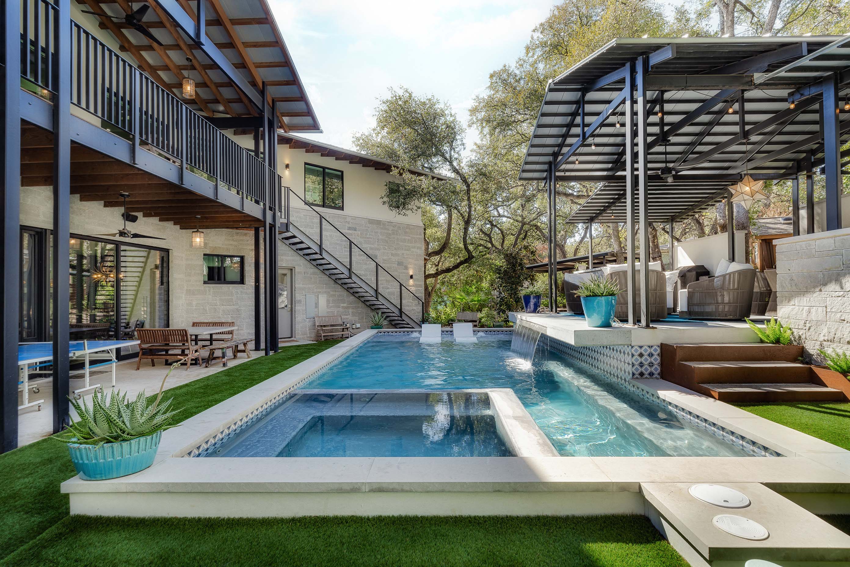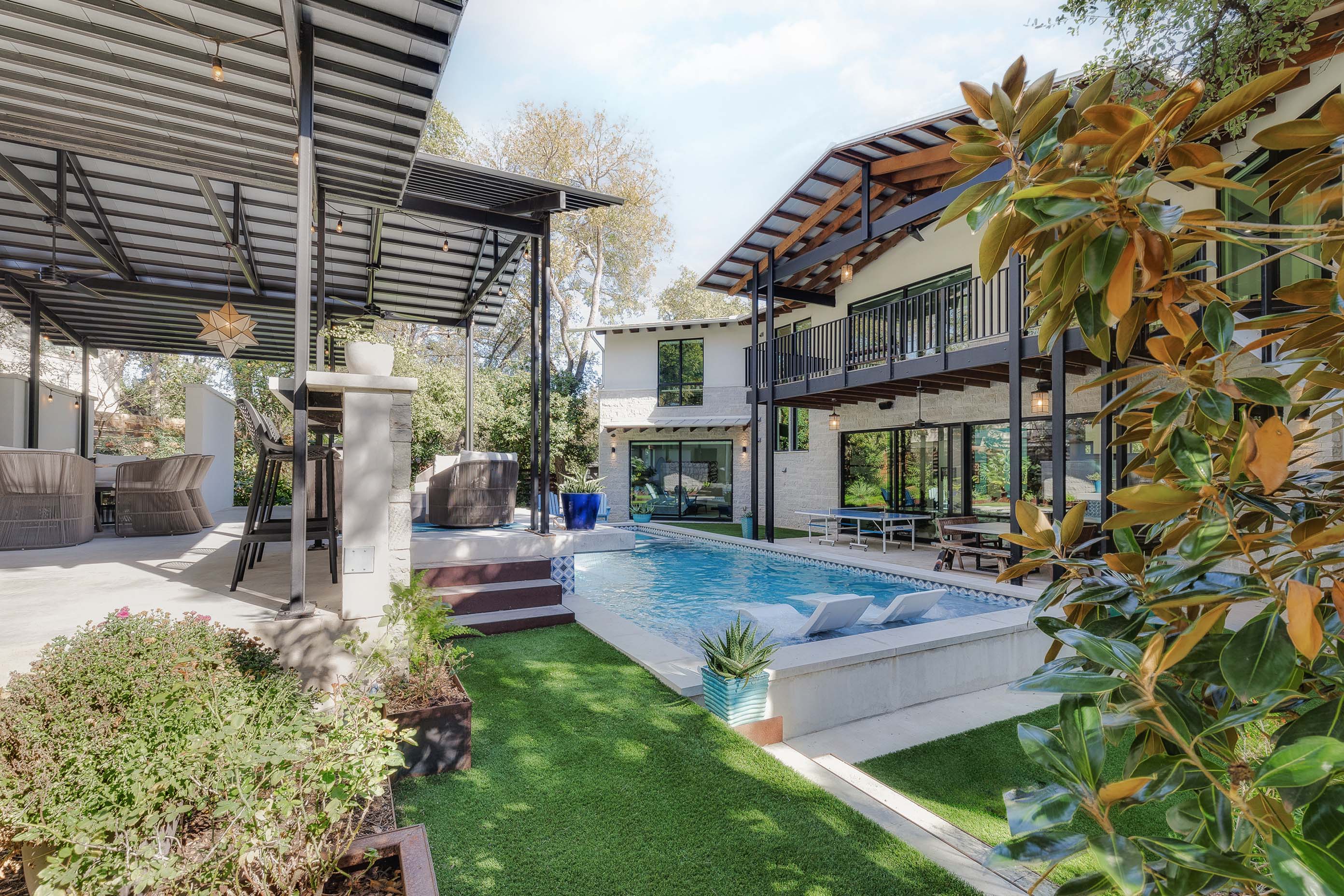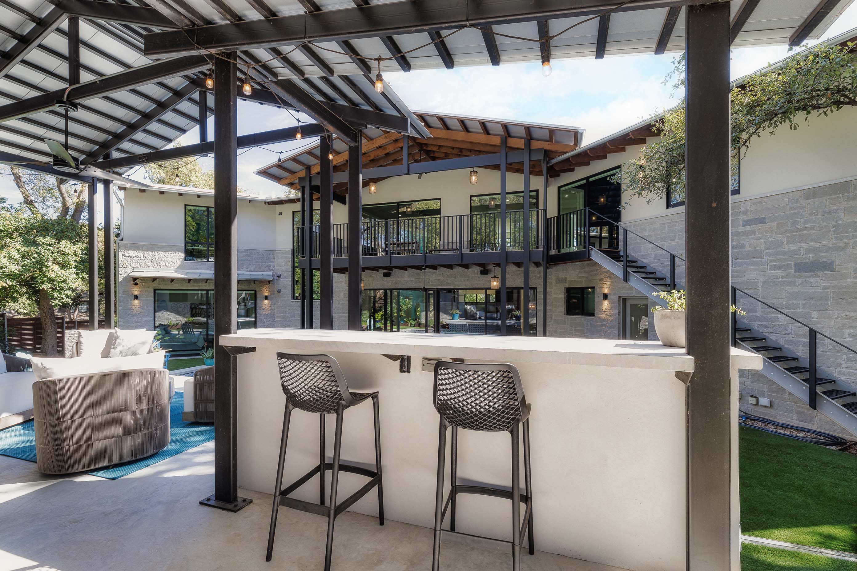 This custom home embodies the quality, craftsmanship, and attention to detail expected in a true luxury residence. Situated on a flat, tree-canopied 1/2-acre lot in highly desirable Westwood Terrace, this property offers an unbeatable combination of privacy and walkability in Westlake's most sought-after neighborhood. The thoughtfully designed layout features a luxurious owner's suite with separate his-and-hers primary baths, three expansive living areas, and versatile guest quarters with both interior and exterior access. Seamless indoor-outdoor living is at the heart of this home, opening to a resort-style pool and cabana. This backyard oasis is perfect for both entertaining and relaxation. Ideally positioned at the end of a quiet horseshoe street, this idyllic setting provides a peaceful retreat while being just a five-minute walk from the best of Westlake, including top-tier lifestyle amenities and Eanes ISD, the #1-ranked school district in Texas. For added convenience, the home is also available fully or partially furnished, offering a turnkey luxury living experience. Low tax rate- 1.47%